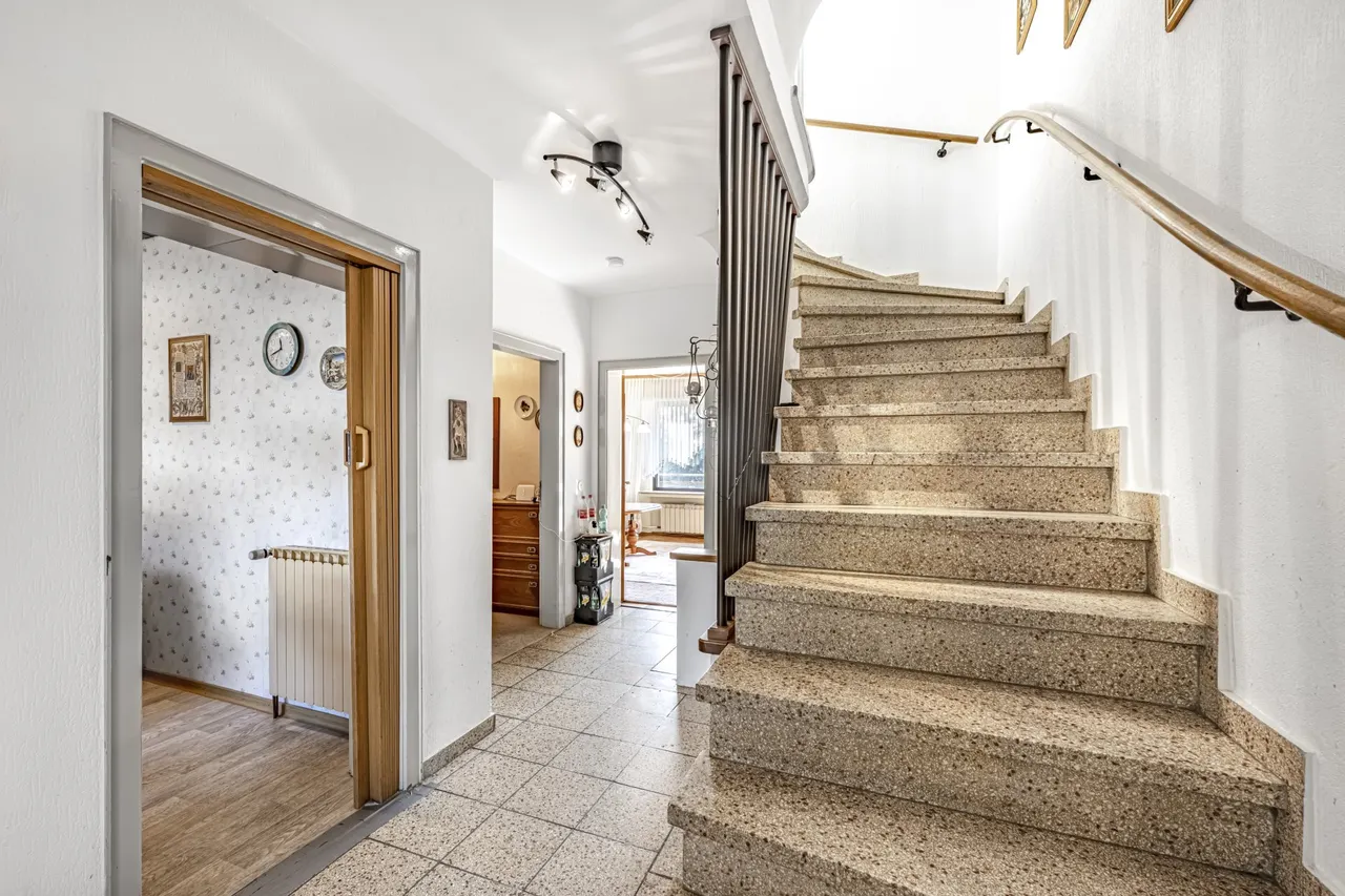 Das Haus befindet sich in einem gepflegten Gesamtzustand, erfordert jedoch weitere Renovierungs- und Modernisierungsmaßnahmen – ideal also für Käufer, die ihren eigenen Stil verwirklichen möchten.