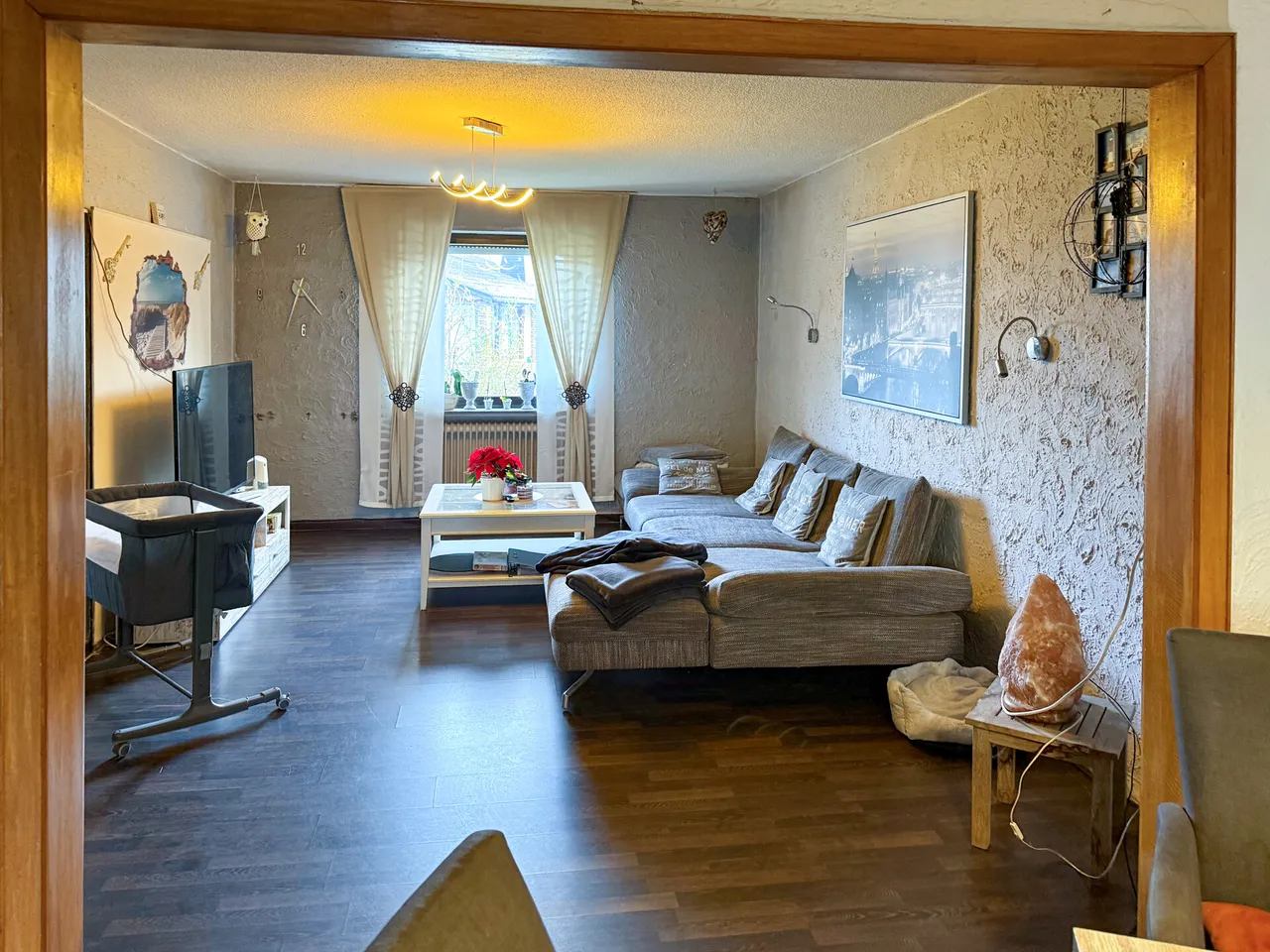 Dieses renovierungsbedürftige Einfamilienhaus aus ca. 1950 bietet auf rund 129 m² Wohnfläche und einem weitläufigen Grundstück von ca. 1.500 m² viel Platz. Der zweigeschossige Massivbau überzeugt mit einer guten Raumaufteilung: Im Erdgeschoss befinden sich ein Schlafzimmer, ein großer Wohn- und Essbereich mit Kaminofenanschluss, eine Küche sowie ein Gäste-WC – ideal für ältere Personen oder barrierearme Wohnkonzepte. Im Obergeschoss stehen drei weitere Zimmer und ein Bad bereit. Der Vollkeller mit vier Räumen sorgt für viel Stauraum. Auf dem Grundstück befinden sich außerdem eine große ehemalige Scheune /z.T. vermietet mit drei Teilbereichen sowie ein Garagengebäude, die vielfältige Möglichkeiten für Hobbys, Werkstatt, Lager oder zusätzliche Fahrzeuge bieten. Die großzügige Hofeinfahrt schafft weitere Stellplätze. Das Objekt wird zu Ende Januar 2026 frei.