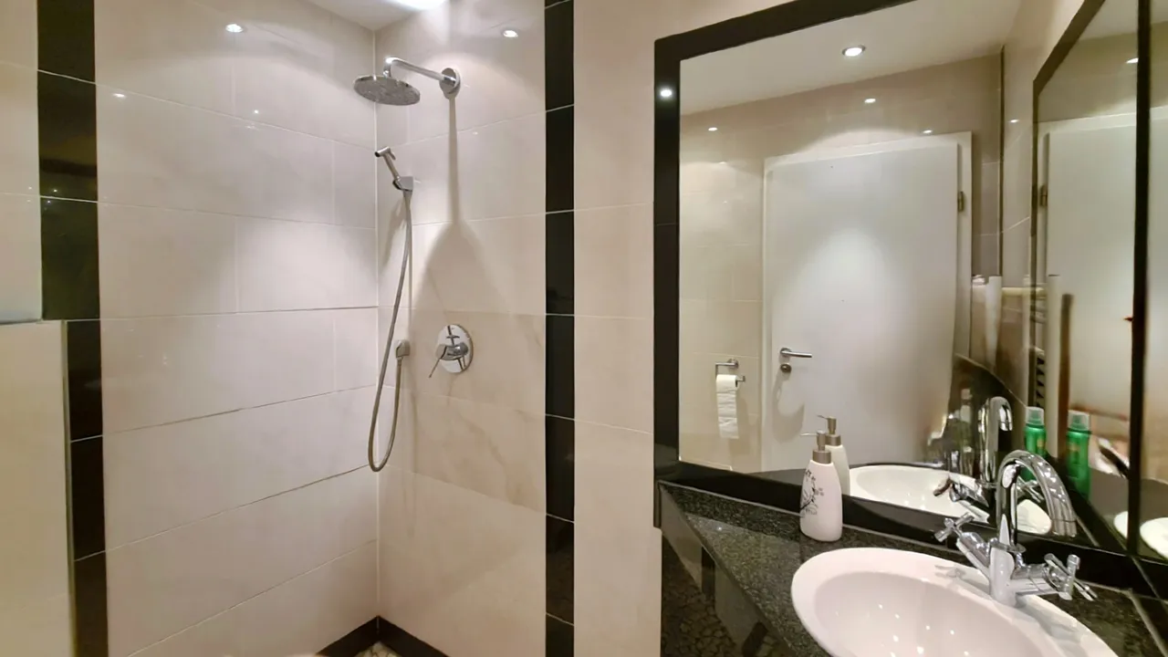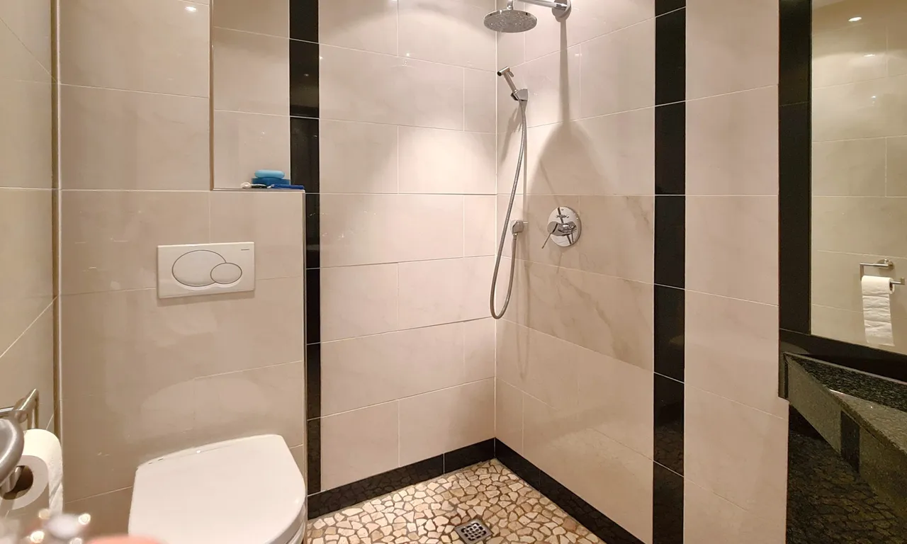- Hochwertiger Waschtisch mit Granitplatte im Duschbad