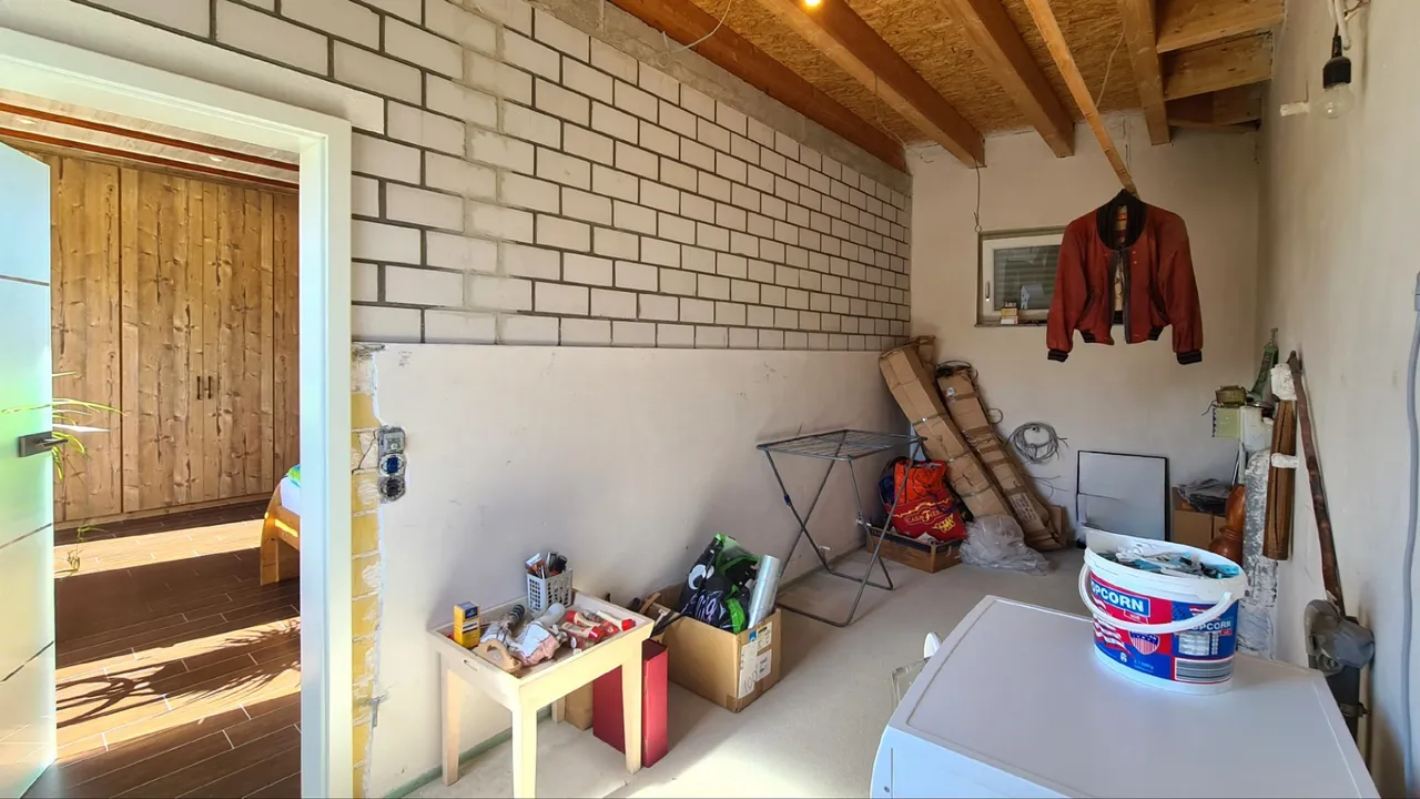 - Garage mit Zugang zum Haus und über die Terrasse zugänglichem Abstellraum inkl. Waschtisch, Dusche, Waschmaschinenanschluss (für angenehme Abkühlung im Sommer/nach dem Sport/als Duschmöglichkeit für Ihren Vierbeiner)