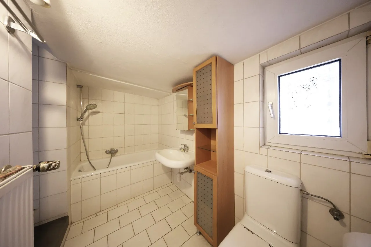 Duschbad mit Waschbecken, WC und Fenster, Wannenbad mit Waschbecken, WC und Fenster.
