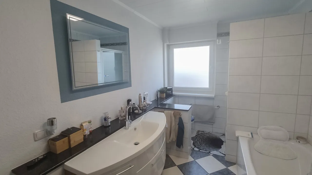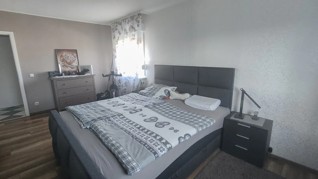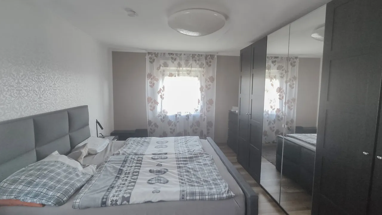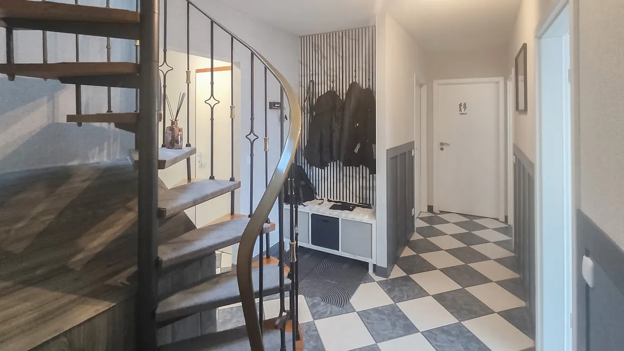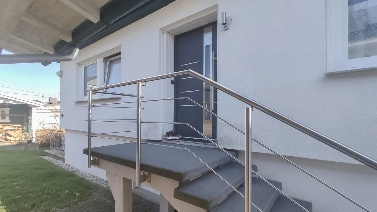Die durchdachte Raumaufteilung überzeugt: Im Erdgeschoss erwartet Sie die Hauptwohnung mit hellem Wohnzimmer, Essbereich, Schlafzimmer, Küche, Bad und Hauswirtschaftsraum. Ein großzügiger Balkon mit schönem Ausblick sorgt für entspannte Stunden.