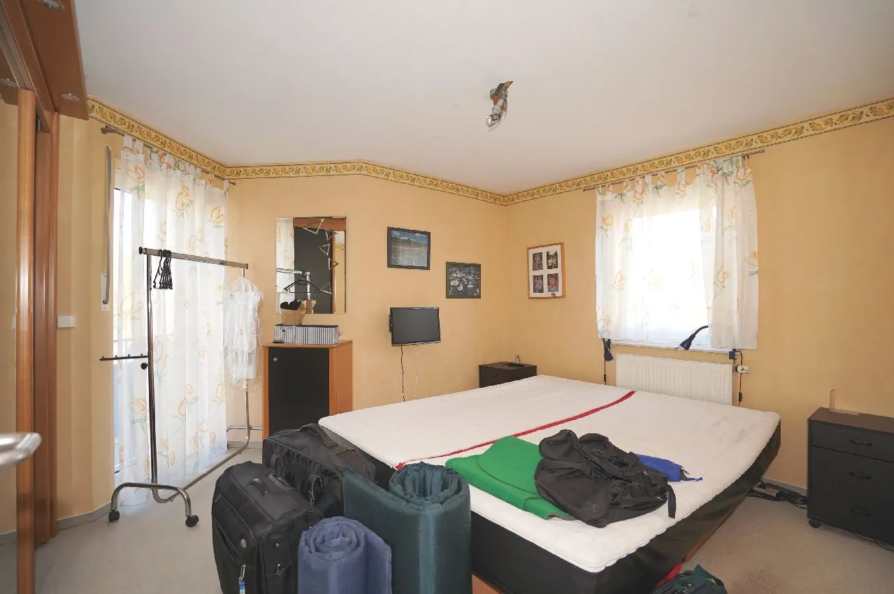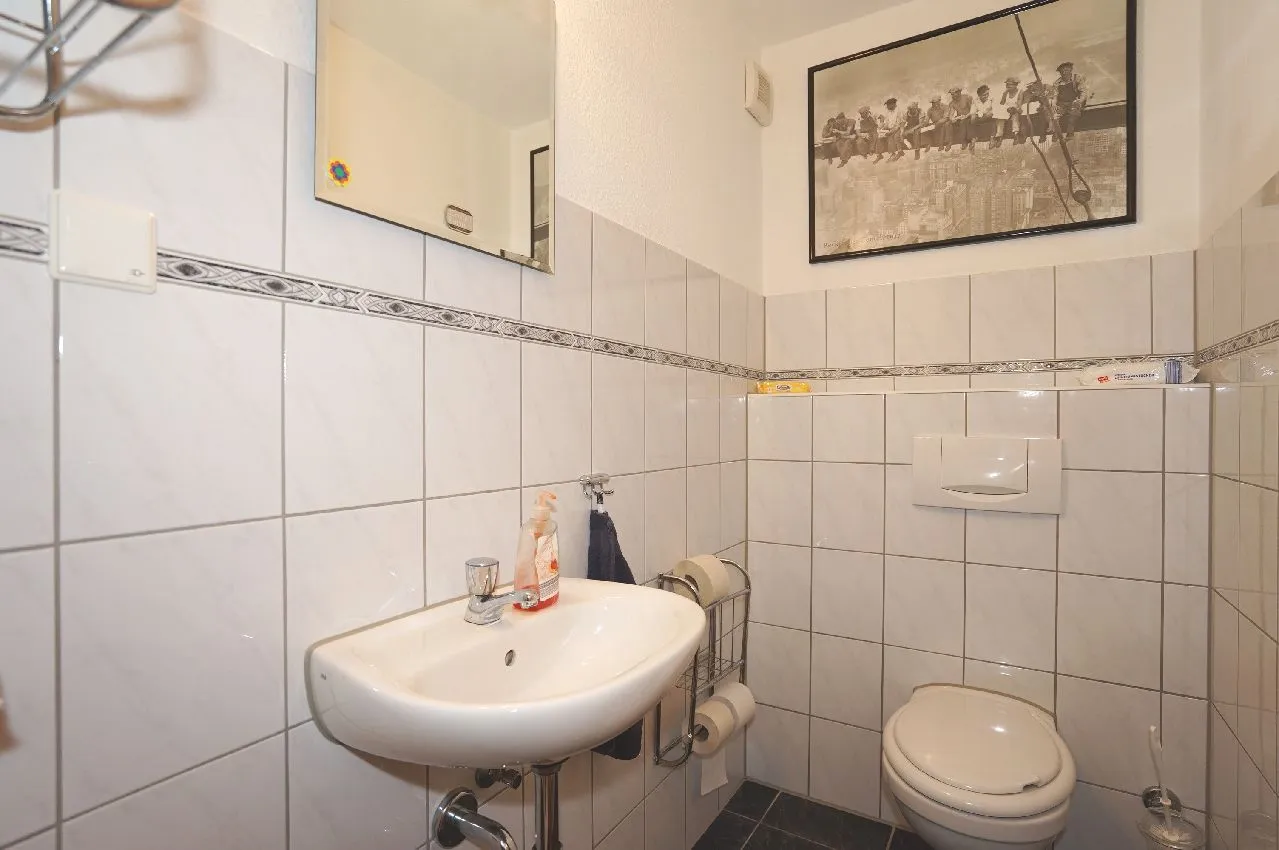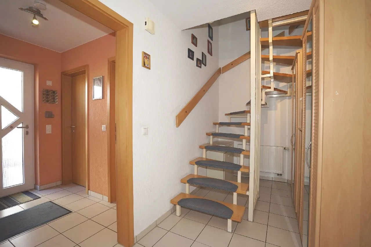 Auf den rd. 128 m² sind so aktuell 5 Zimmer vorhanden. Ausreichende Abstell- und Stauraumflächen bietet die nicht unterkellerte Doppelhaushälfte in den Abstell- und Technikräumen des Erd- und Dachgeschosses, in einem von außen zu bedienenden Abstellraum im 1. OG sowie in der Garage, die direkt vom Garten aus zu begehen ist. Auf der Giebelseite des Hauses steht ein weiterer Pkw-Stellplatz zur Verfügung.