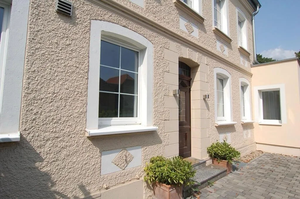Zwar verfügt das Haus über keinen eigenen Garten, dafür beginnt die Natur direkt vor der Haustür: weitläufige Grünflächen, Spazierwege und die unmittelbare Nähe zum Schlosspark bieten ein einzigartiges Wohngefühl zwischen Ruhe und Natur.