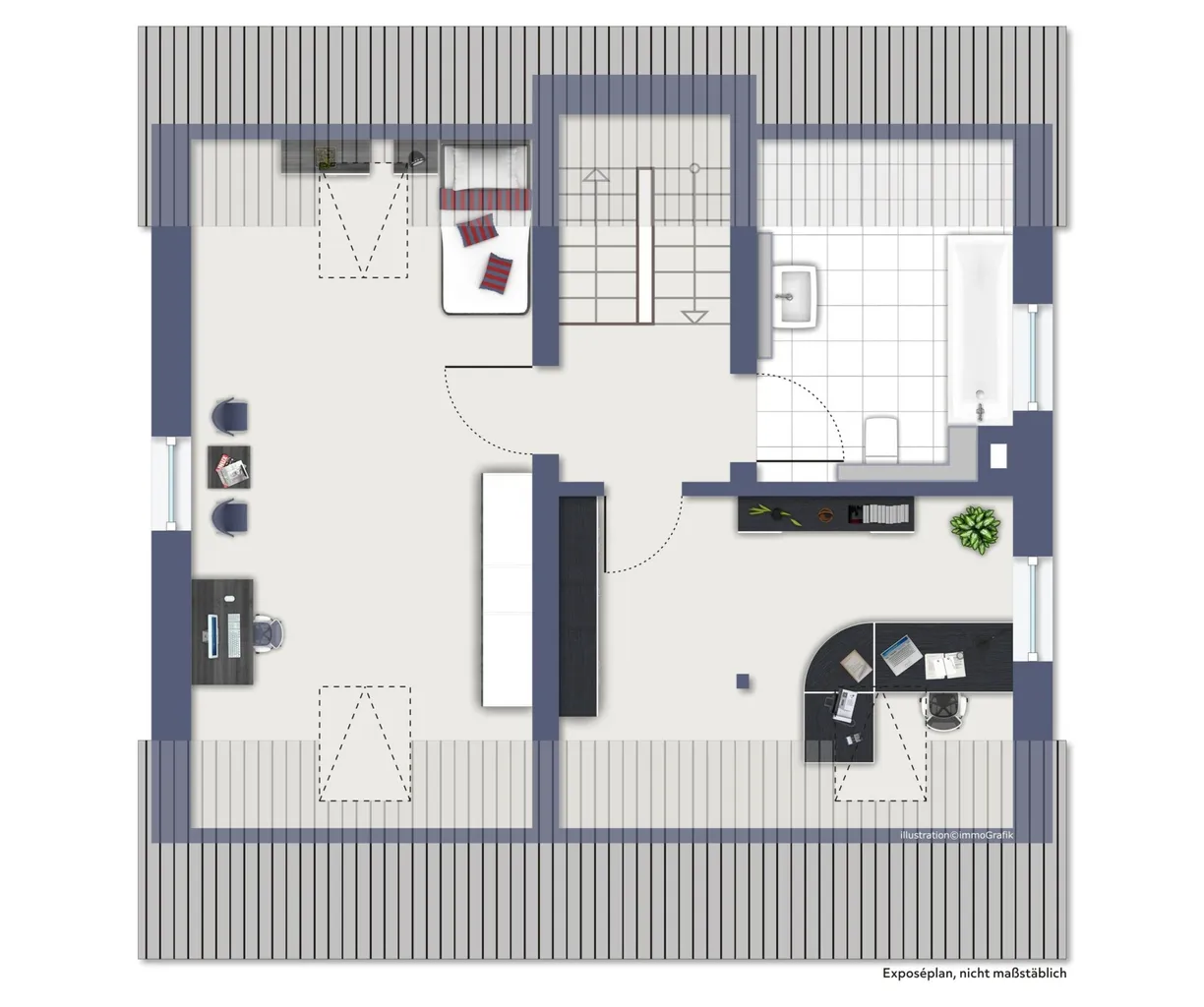 Die große Süd-West-Terrasse erweitert den Wohnraum nach draußen und bietet ideale Bedingungen für sonnige Nachmittage und Abende.