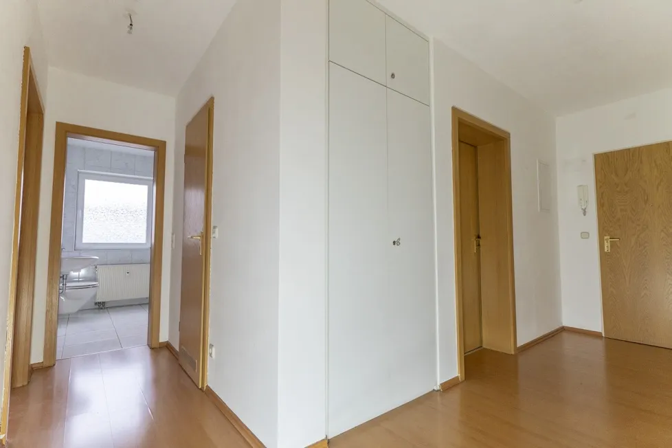 Sie parken bequem in der Garage vor dem Haus und erreichen die Wohnung über das gepflegte Treppenhaus.