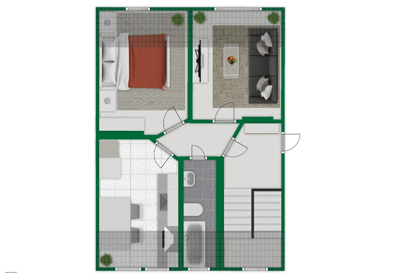 Alle Räume sind ideal geschnitten, sodass Sie Ihre Möbel problemlos platzieren können. Die Küche bietet genügend Platz für eine Einbauküche und einen großen Esstisch.