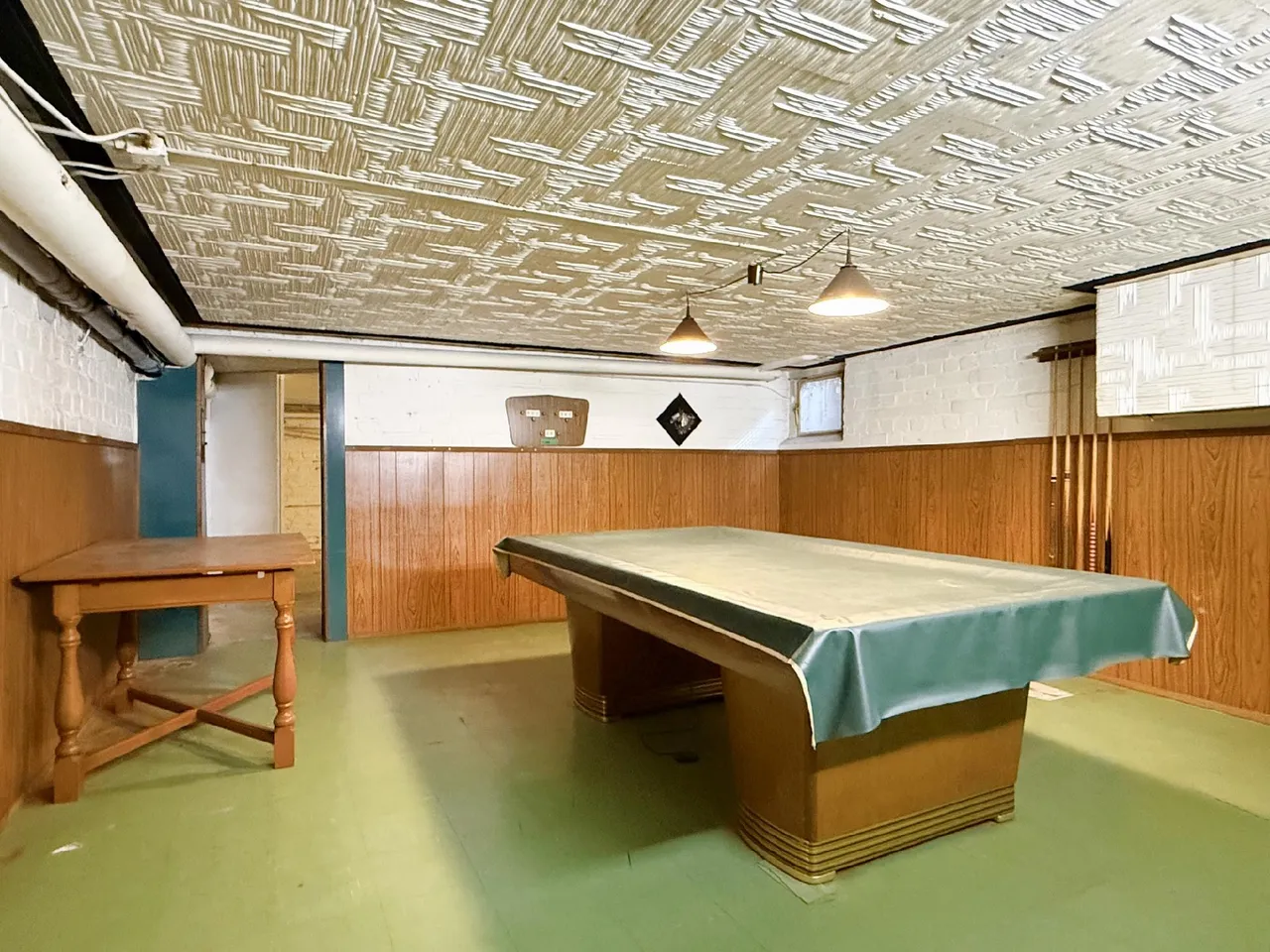 Die Immobilie ist voll unterkellert. Den Keller erreichen Sie sowohl über eine Treppe, welche sich hinter der Küche befindet, als auch über die Zufahrt der im Kellergeschoss gelegenen Garage. Eine geräumige Waschküche, zwei große Räume, ein Heizungskeller und die genannte Garage bieten viel Stauraum.