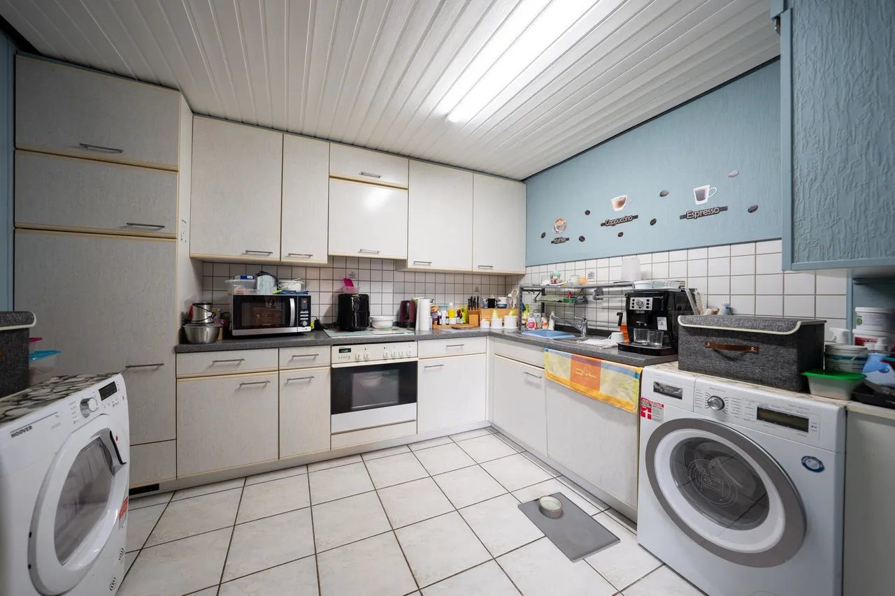 Ein ehemals vorhandenes Schwimmbad wurde zu einer beeindruckenden zusätzlichen Nutzfläche von ca. 94 m² umgebaut. Dieser Bereich bietet einen eigenen Küchenbereich, Wohnbereich, Wannenbad, Schlafzimmer mit angrenzendem Duschbereich sowie weitere Nebenräume – ideal als Gäste-, Hobby- oder Mehrgenerationenbereich, Homeoffice oder perspektivisch zur individuellen Weiterentwicklung.