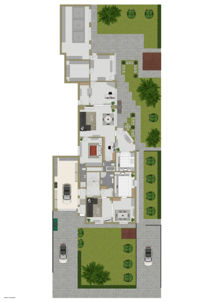 Zwei Carports sorgen für bequemes Parken. Der Garten begeistert mit vorderen und hinteren Gartenbereichen, die Privatsphäre, Spielflächen für Kinder oder entspannte Rückzugsorte im Grünen bieten.