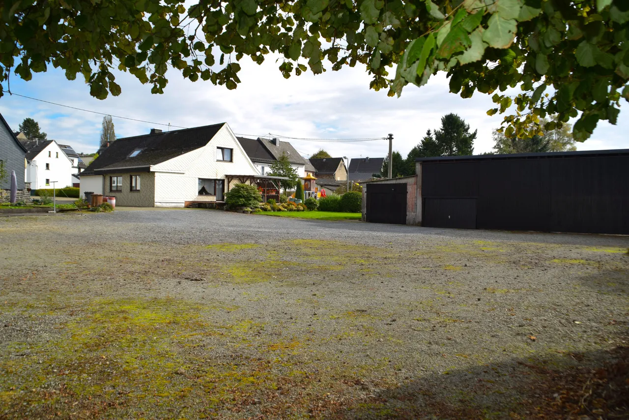 Das hintere Grundstück, bebaut mit einer Wagen- und Lagerhalle, kann eigenständig genutzt, bebaut oder verkauft werden. Im Jahr 2024 wurde das Dach der Lagerhalle erneuert.
