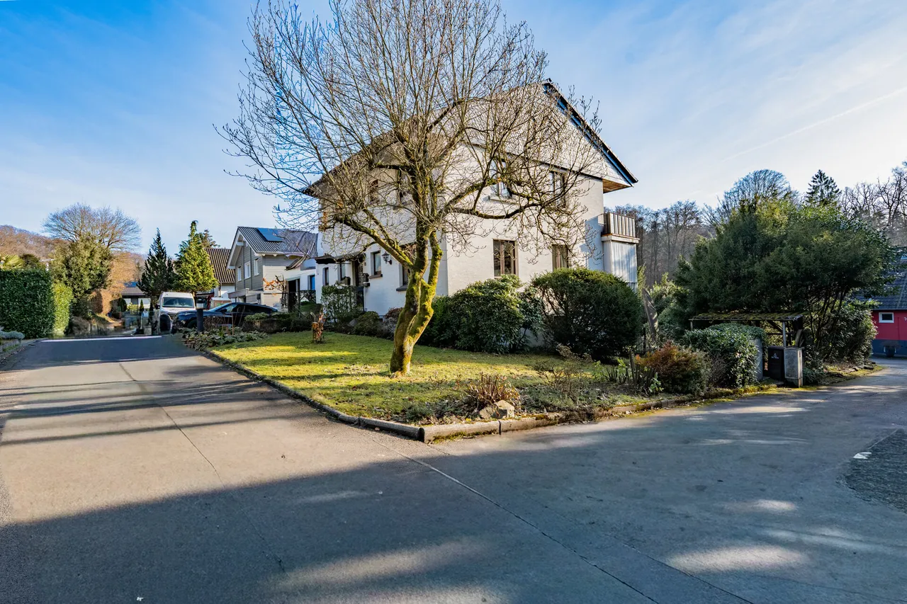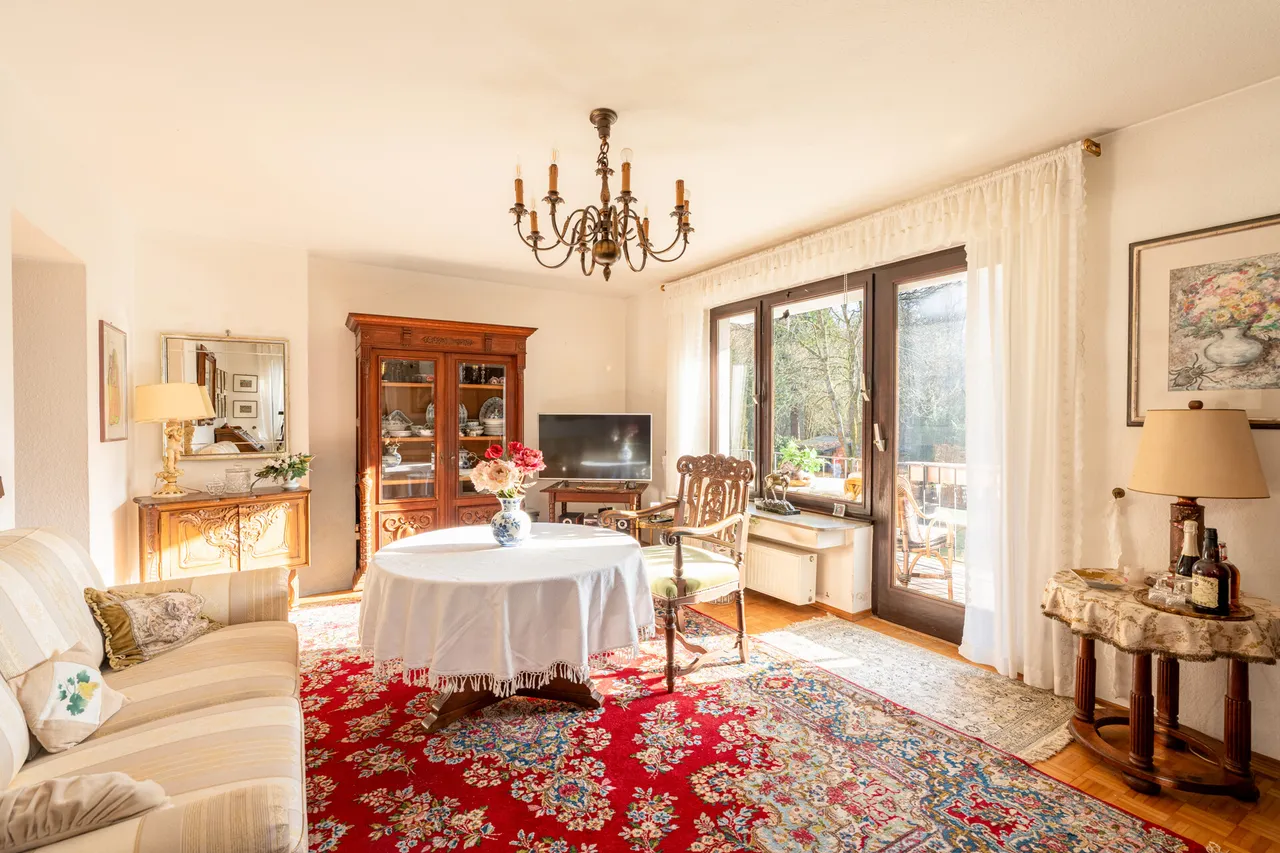 Ein weiteres Highlight ist das Gartengeschoss in Hanglage, welches neben klassischen Abstell- und Nutzräumen auch einen Waschkeller sowie wohnlich ausgebaute großzügige Gesellschaftsräume mit eigener Küche und Kamin umfasst. Von dort besteht direkter Zugang zur Terrasse und in den Garten, wodurch sich dieser Bereich hervorragend für gesellige Abende, Feiern oder als Hobby- und Freizeitbereich eignet. Die Immobilie befindet sich in renovierungsbedürftigen Zustand, der Käufern die Möglichkeit bietet, durch gestalterische und technische Maßnahmen ihre eigenen Wohnvorstellungen zu verwirklichen und das Haus individuell zu modernisieren. Die solide Bausubstanz, der attraktive Grundriss und die naturnahe Lage machen dieses Objekt zu einer Immobilie mit besonderem Potenzial.