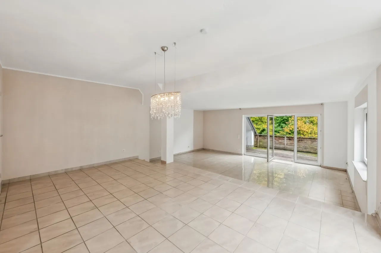 Diese Immobilie bietet eine tolle Raumaufteilung mit Wohnkomfort durch Blick ins Grüne. Schon beim Betreten des Wohnbereichs, welcher über einen großzügigen Flur erreichbar ist, wird man durch bodentiefe Fenster und die angrenzende Terrasse von diesem Blick überzeugt.